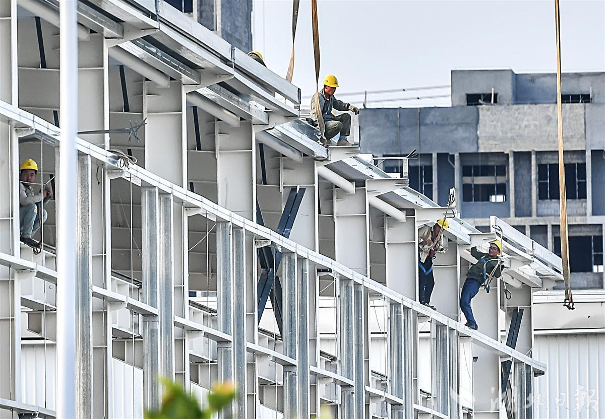 9月19日,经过一年建设的武汉金盘智能科技绿色产业园,目前,园内的主体结构已经全面封顶,并进入初装修阶段,预计今年年底竣工投产。