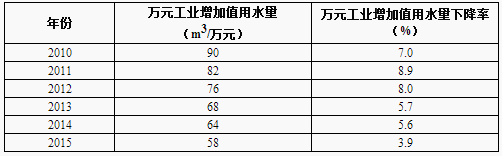 数据来源:国家统计局《国民经济和社会发展统计公报》(2010-2015)。注:万元工业增加值用水量按2010年不变价格计算。
