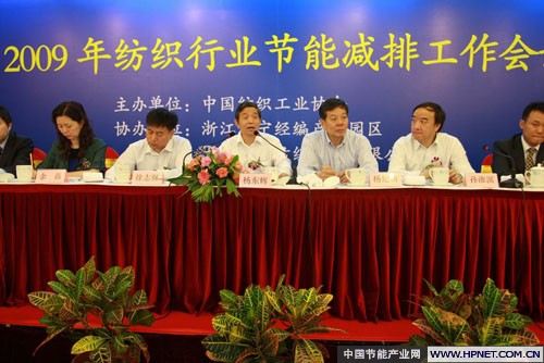 5月9日,2009年纺织行业节能减排工作会议在北京召开,本次会议由中国纺织工业协会主办,由江海宁经编产业园区、太原新凯纺织印染有限公司协办。中国纺织工业协会副会长杨东辉、秘书长杨纪朝、发改委环资司节水处徐志强处长、国家工信部节能司节能处余薇处长出席了本次会议。