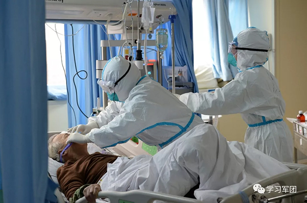 面对收治病人多、防护物资少、感染风险大等诸多困难,解放军医疗队逐个患者摸清底数、制定方案,坚持科学施救、精心救护,争分夺秒与看不见的“敌人”顽强奋战。(图片来源:军事时政新闻微信公众号)