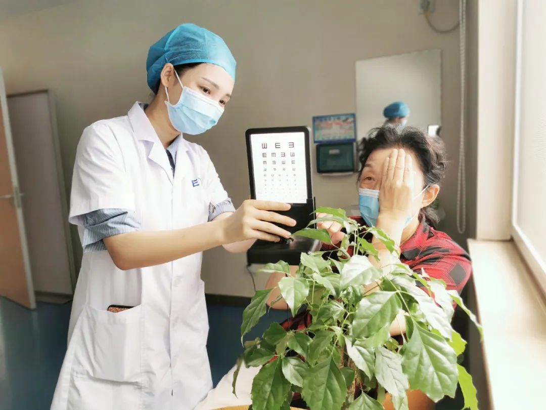 ▲术后第一天,刘勇院长为周阿姨做术眼检查