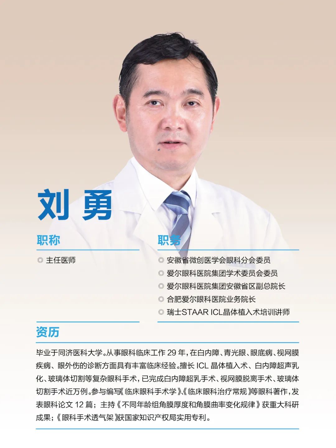 刘勇院长专家坐诊时间:每周二下午、周五上午 周日下午(老视门诊)