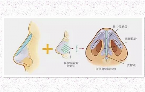3、自体软骨隆鼻:是利用人体软骨组织(耳后、鼻中隔、肋骨)等,经过雕刻后移植到鼻部的一种隆鼻手术方式。适用于鼻部畸形、反复整形失败或对鼻部整形要求极高者。
