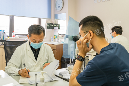 而这对于周跃华教授来说却是轻松应对。他在开展全飞秒手术时,小心翼翼地用细小的镊子伸进角膜基质层,用很快的速度取出透镜。之后把透镜放在显微镜下检查每一个部位边缘的完整性和规则性,确保手术顺利。