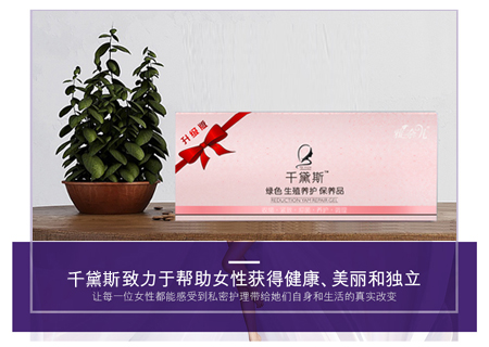 千黛斯抓住阴道松弛根源,提出“养护结合”,利用天然植物成分,激活阴道细胞活性,修复阴道受损组织,恢复阴道弹性,重现阴道紧致,另外清除体内的病菌,恢复阴道自净能力,全方位呵护女性阴道健康。