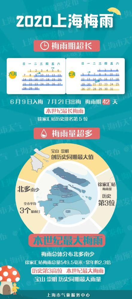 去年上海的梅雨得到了“本世纪雨量最大、梅雨期最长”的称号,可才一年过去,这一称号已经易主,今年的梅雨量以及梅雨季长度均超过了去年。