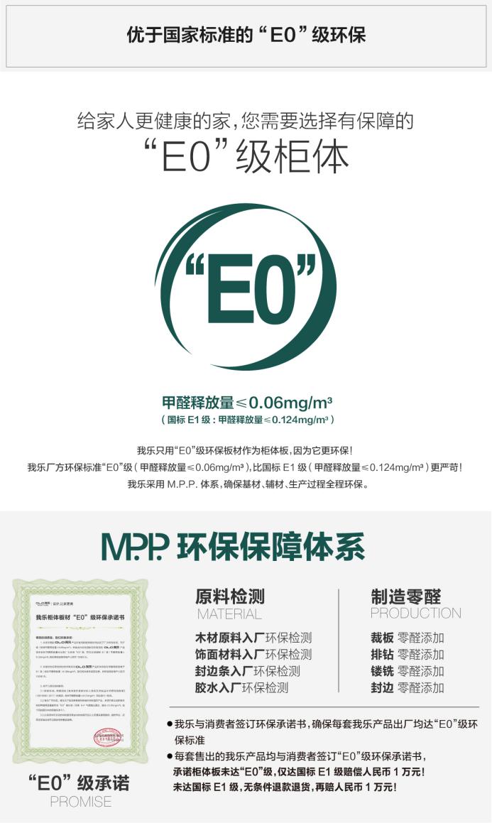 图:我乐橱柜”E0”级柜体板材