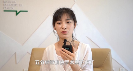 周教授告诉媛媛:“手术很快就完成,你要做的就是发呆和不紧张。眼睛紧盯着视野里出现的绿色亮点就行,亮点在术中可能消失,眼睛依旧保持不动就可以了”。护士也在旁边安抚着她,媛媛整个手术过程配合得非常好。几分钟后,媛媛就完成了手术。