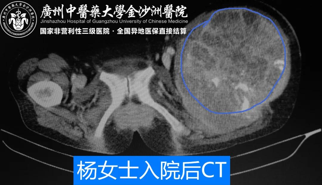 杨女士入院后CT显示肿瘤大小约 25*20*20 cm▲编辑