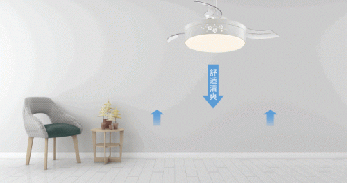 在不吹风的状态时,扇叶会自己收起来,还原了吊灯的模样,简洁大方。其简约的造型,自然的形态,透出几丝休闲的味道,搭配在客厅或者餐厅使用,美观又大方。