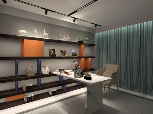 在这样的商业空间,我们可以采用磁吸轨道+轨道射灯模块+吊线射灯模块+泛光灯模块,射灯模块精准控光,重点照射商品,避免光线直接照射到顾客身上产生不适眩光;泛光灯模块补充空间的照明亮度,两者相互结合,营造别具一格的光影氛围。