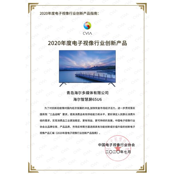 会上,来自工业和信息化部电子信息司、上海市经济和信息化委员会及中国电子视像行业协会等领导齐聚一堂,与国际知名专家、彩电头部企业高层回顾行业成就,共商行业未来,探讨彩电市场现状,尤其就防疫常态化、基建全面化等背景下智能显示行业的应用研究,趋势研判和商机破局展开研讨。此次峰会发布了《2020年度创新产品推荐指南》,海尔智慧屏65V81(PRO)、65U5成功入选年度创新产品。