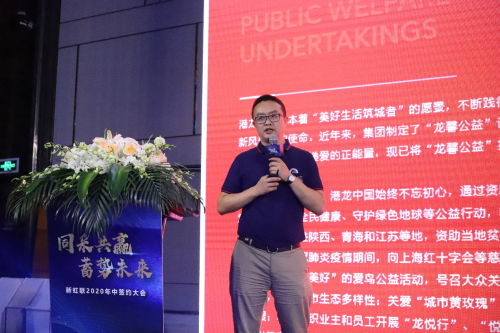 2020年7月29日,港龙中国地产作为新虹桥采购联盟发起成员之一,与弘阳集团、大发地产、三巽集团、港龙中国地产、上坤集团、领地集团、奥山控股、大华集团、康桥集团、江苏城投10家联盟单位代表、40余家新晋新虹桥采购联盟(以下简称“新虹联”)战略合作伙伴共聚上海,举办了主题为“同采共赢 蓄势未来”的2020年中签约大会。港龙中国地产成本管理中心副总经理范志华先生出席会议。