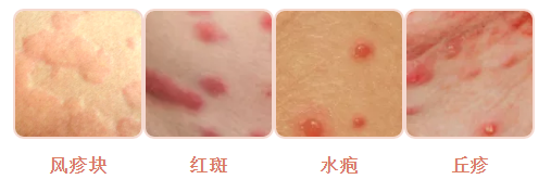 2、荨麻疹:一般有风疹块,有灼热感及发烧恶心等并发症状