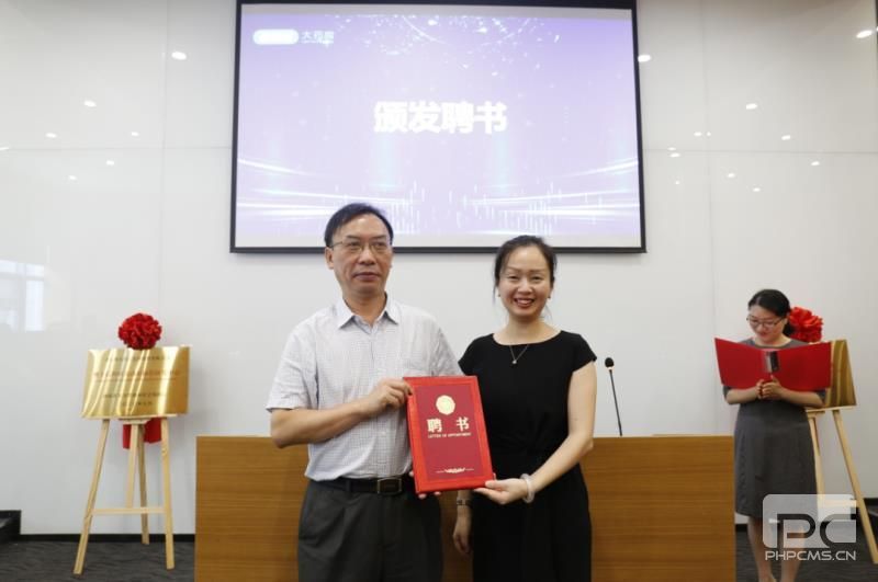 授牌仪式现场,老百姓大药房执行总裁王黎向博士后合作导师——湖南中医药大学副校长何清湖教授颁发聘书。