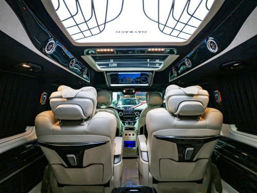 内饰,高顶设计搭配随氛围调节的柔和灯带,照亮了整车内饰的层次流线感,不仅使内部空间宽阔,更让车内整体氛围温馨而舒适,为驾乘者带来难以言喻的享受和体验,这是其他豪华商务车望尘莫及的。细细品味以顶级Nappa手工缝制的航空按摩座椅,配备扶手、豪华头枕、腿托,处处彰显人性化设计,后排沙发座椅是可180度放平的旅行床,即使长途旅行的过程中也能为出行人员提供舒适的休息。
