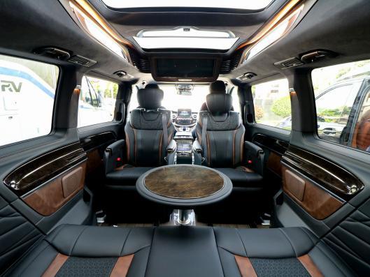 改装后的奔驰V级商务车另一大亮点便是车内的家庭影音,24寸曲面电视配合柏林之声音响,加上后排灵活收缩欧式吧台,即使在旅途中也可看着喜欢的电视节目,喝杯咖啡,就如在家中客厅一样,悠闲自在。