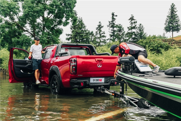 其实,不仅仅是选手们的娴熟技艺,身为一名资深路亚迷,在赛事现场,我还被一款“助力嘉宾”圈粉,没错,就是存在感超高的长城炮越野皮卡。不得不说,从嘉宾入场到参赛环节,长城炮越野皮卡的表现堪称惊艳,凭借超强的越野能力及具备拖船、涉水的产品特性,其完美契合路亚钓鱼的特点,成为路亚选手的最佳拍档。