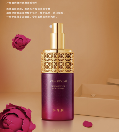 拥有着浓厚中国底蕴的片仔癀化妆品,巧妙地将中国传统文化与现代美容精髓融合在片仔癀牌凝时素颜紧致精华之中。复古红的瓶身+镀金镂空窗花元素的点缀,将高贵优雅之态表露无遗,既具淑雅恬静的东方之美,更显大气摩登时尚范儿。