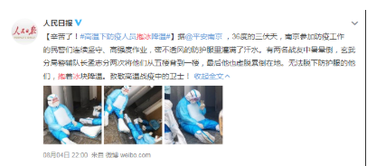 ▲高温下防疫人员抱冰降温