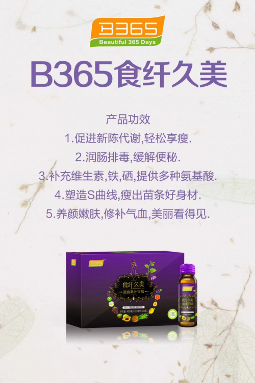 b365酵素的PH值更加接近人体的数值,所以更加容易被胃肠道吸收。它可以在胃肠道表面形成一层保护膜,起到修复倡导、分解多余脂肪、中和胃肠道酸性物质、软化肠壁沉积物的作用。同时,b365酵素的清宿便功能很强大。多次食用之后,就可以有效地增加肠道蠕动,平衡肠道内的菌群。并且,有效、快速地分解食物中的过多脂肪与蛋白质、碳水,净化肠胃、纤体瘦身!