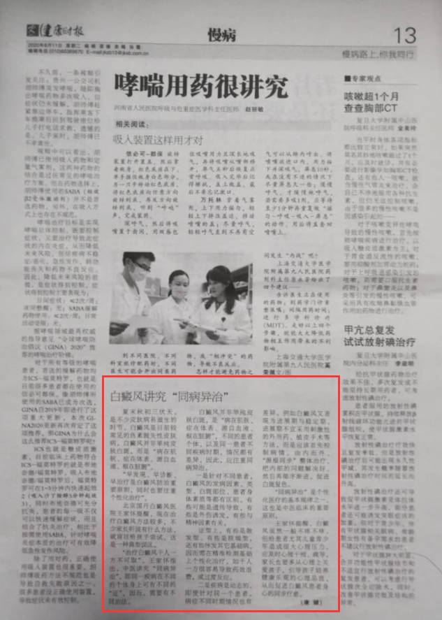 “早发现、早诊断、早治疗是白癜风防治重要原则,同时也要注重个性化治疗”。
