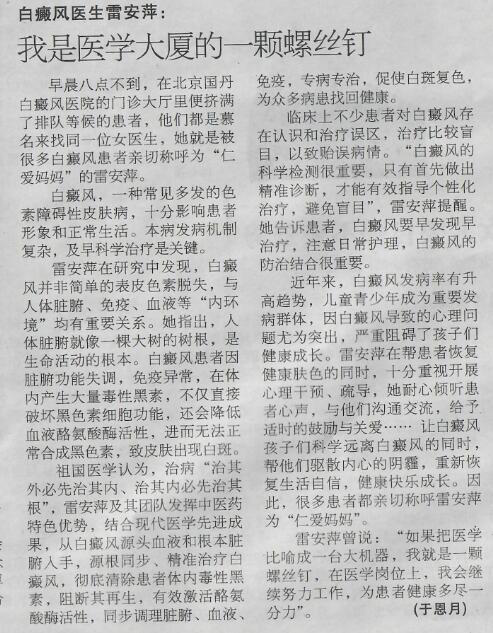 《健康时报》报道北京国丹白癜风医院雷安萍螺丝钉精神