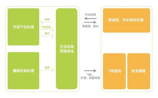开平固废综合处理中心将以垃圾焚烧发电项目为能源核心,餐厨垃圾处理、污泥处理、渗滤液处理等各项目在同一园区内,实现各环节的资源共享、资源互换。