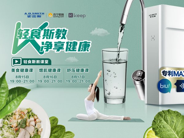 8.15-8.17每晚19:00-21:00,进入苏宁,京东,天猫A.O.史密斯自营旗舰店直播间,让美食达人、增肌达人、瑜伽达人教你如何健康美。