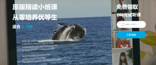 有一天儿子突然就跟我说他想学英语,原来幼儿园的小朋友有好多都报了英语辅导班,经常在他面前用英语对话,还被老师表扬过,但是他会的都特别简单,就怕被小朋友甩在后面,因此萌生了学英语的想法。看儿子有这么高的学习积极性,我当天就联系了那个小朋友的家长,并从她那里得知了鲸鱼外教培优。