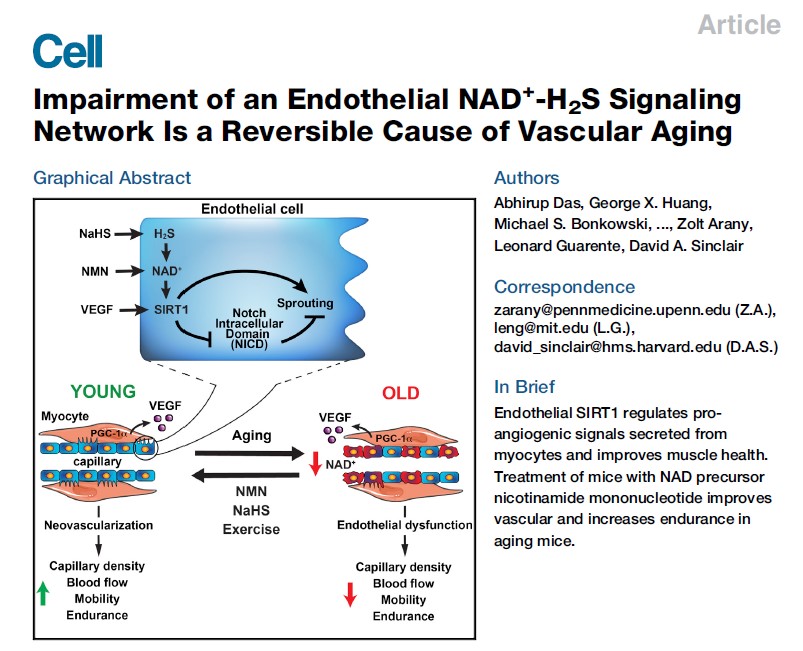 大卫·辛克莱尔教授使用CELFULL的NMN原料在顶级学术期刊《Cell》上发表了NMN通过提升NAD+水平逆转血管老化的研究成果。