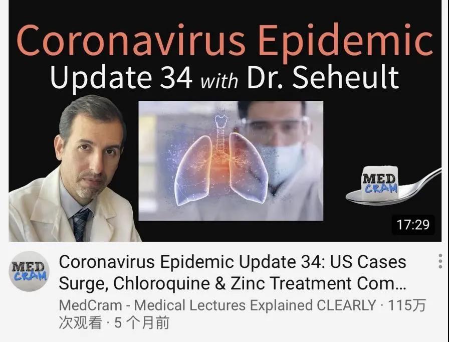 作为一名肺科及重症医学科专家,自1月武汉疫情爆发以来,塞尤特博士便持续关注疫情动态,并定期在他的油管(YouTube)频道MedCram上发布新冠病毒的医学视频。目前他仅在油管的粉丝数就已有80多万。