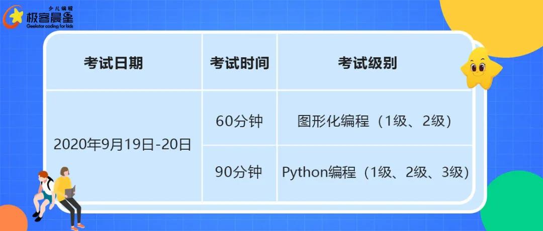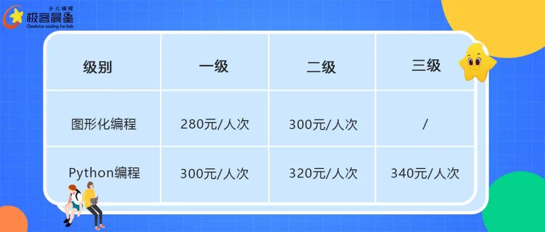 对此考试,极客晨星根据考纲,特意对内部资深名师进行了系统专业培训,包括考试范围、考试题型以及考误培训等,旨在帮助孩子一次通过考级考试。