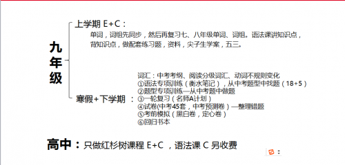 初中九年级、高中年级ECC教学安排: