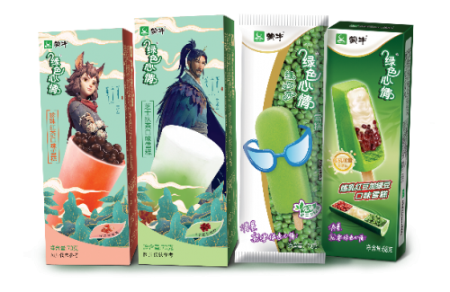 作为蒙牛最为经典、销售最好的冰淇淋品牌,随变冰淇淋与白酒品牌江小白推出联名冰淇淋,首发渠道是盒马鲜生,“将比利时双层巧克力、当红白酒江小白与冰淇淋创造性地结合”。这一联名在微博的话题,引发阅读150多万,带动了新一轮传播。绿色心情则以其标志性的豆沙口味,在长达17年的时间里给各年龄段的消费者以冰凉甜蜜,这款当之无愧的“国民雪糕”也玩起了跨界:跨界国漫IP《姜子牙》及茶饮口味,重磅推出芝士抹茶和珍珠红茶口味两款新奇口味,极大满足年轻一代对于个性与新奇的追求。