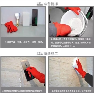 目前用得比较多的一种填缝剂就是勾缝剂,而勾缝剂就是水泥基的填缝剂。现在有人多人对于勾缝剂有着误解,勾缝剂其实并不像很多美缝剂厂商说的那么不堪,好点儿的填缝剂,防霉防水效果还是不错的,而且可选的颜色也很多。邓禄普粘结剂仍然是用来填缝的,只是材料不同了,而粘结剂也是在不断的发展的。就现在的市场情况来看,老式的那种水性美缝剂,基本上已经被淘汰,目前填缝所用的邓禄普填缝剂,材料大多都是环氧树脂+固化剂,按材料来分,可以叫做树脂基的填缝剂。相比传统的勾缝剂,树脂基的填缝剂具有防水,抗污等功能。