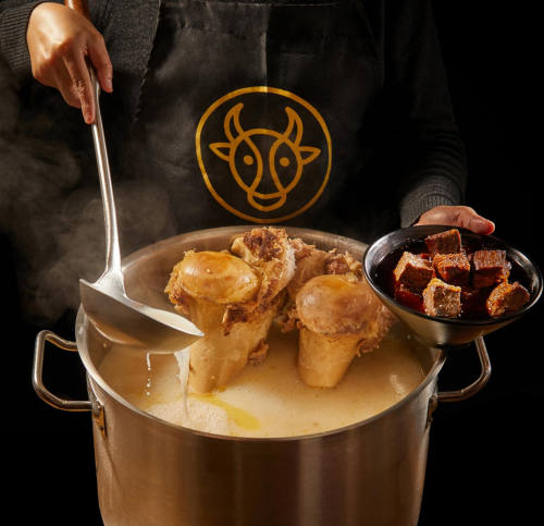 12个小时的熬制,需要足够的耐心和细心,期间还要加入秘制的天然香料,所有的食材和香料在一个锅里沸腾翻滚,互相吸收精华,这个汤底才算是真正的一锅好汤。