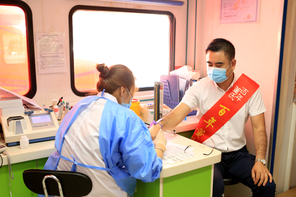 (董增军先生带头献血)