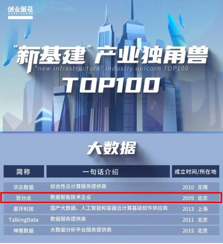 百分点公司荣登“新基建产业独角兽Top100”榜单
