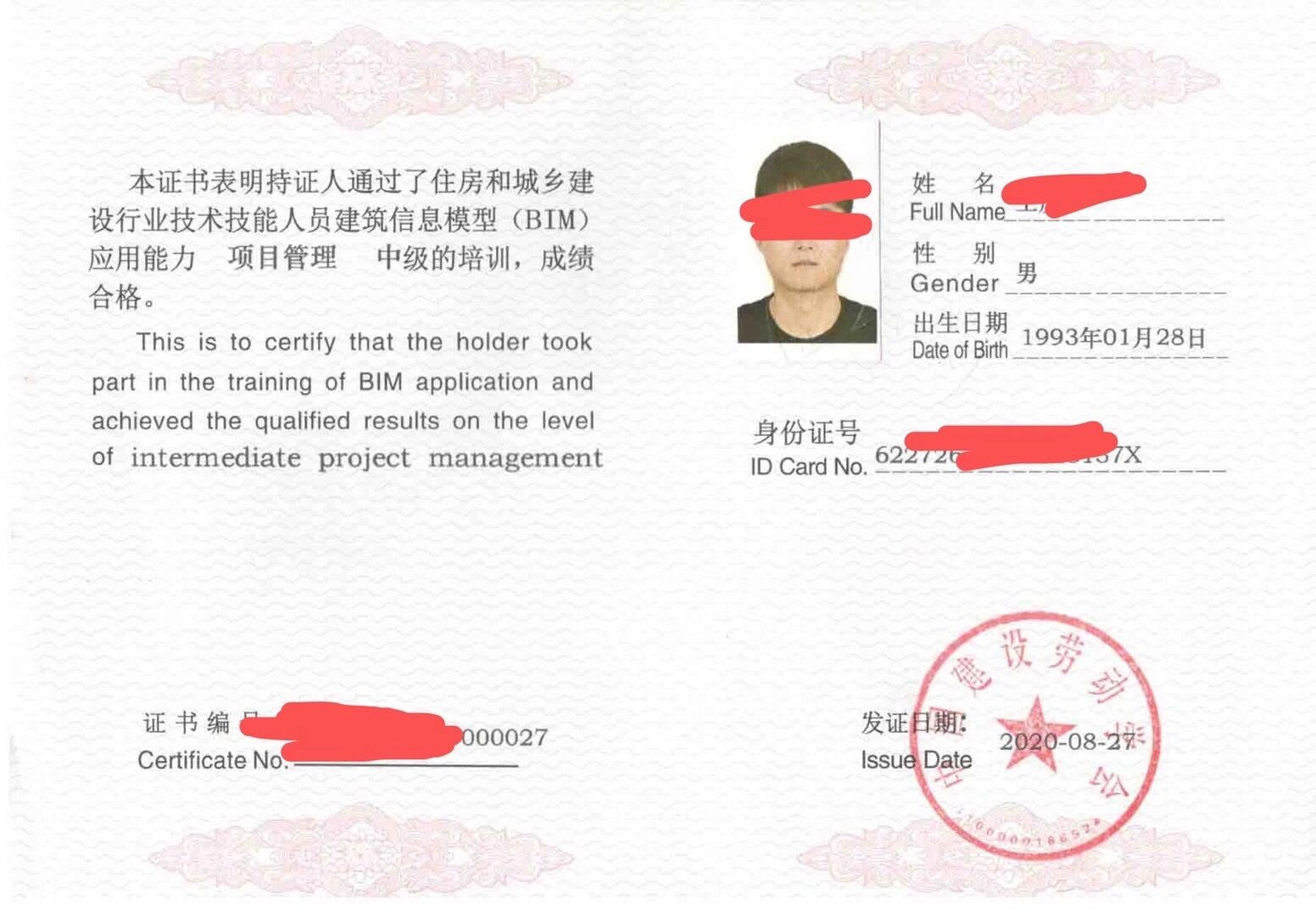 发证机关为住房和城乡建设部中国建设劳动学会