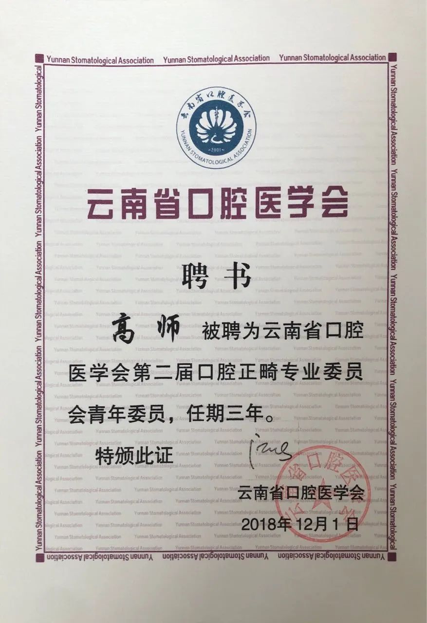 云南省正畸专业委员会青年委员