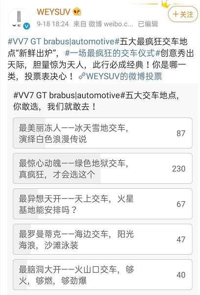 因此,当该车上市时,我当即预定,在等待了一个多月后,交车仪式终于有了眉目。9月14日,WEY品牌发起了交车仪式地点投票,9月19日公布了结果,目前,绿色地狱——晴隆二十四道拐票数最高。如果你了解这个地点有多“刺激”,就会知道为什么这场仪式被车迷称为“史上最疯狂的交车仪式”了。