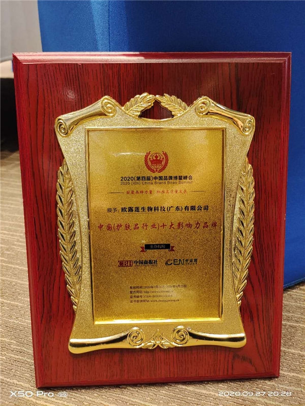 欧露莲荣膺“中国(护肤品行业)十大影响力品牌”