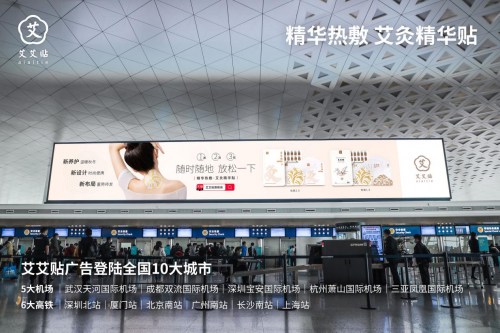 9月艾艾贴才在深圳电视台财经生活频道《深圳40周年献礼》节目中作为代表企业亮相,10月再一次成为大众焦点,强势登陆全国10座一二线城市的机场、高铁站,全面开启刷屏模式,品牌大事件可谓是月月不断。