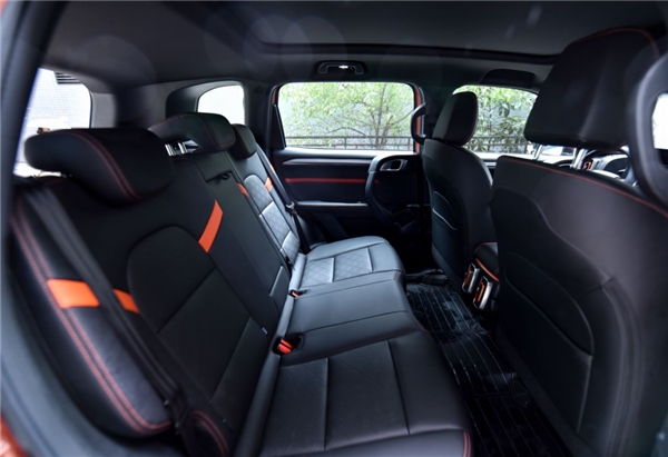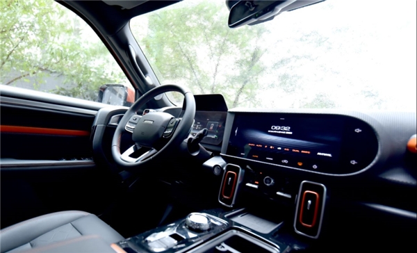 内饰的整体设计十分独特,大量圆角矩形的运用带来了较强的机械感。同时哈弗大狗还增加了不少镀铬装饰,质感有所保证,而且全黑的配色搭配细节处橙色的点缀,让座舱风格更加年轻活力。