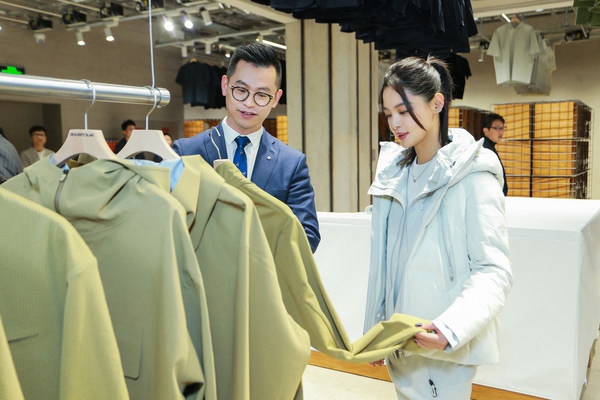 开业活动当天,辛芷蕾以一身经典象牙白配色的ALLTERRAIN系列水沢羽绒服搭配FUSHION KNIT针织连衣裙,清爽优雅亮相;张继科身穿水沢羽绒服系列经典款“MOUNTAINEER登山者”20秋冬最新MAROON RED配色,两位将该系列简约不简单、追求功能性细节、融合经典和创新的匠心精神完美诠释。