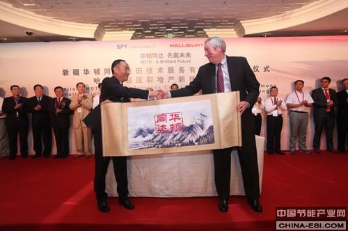 2014年7月9日,华油能源集团(中国领先的非国有油田技术服务企业)与美国哈里伯顿公司(全球最大的为能源行业提供产品及服务的供应商之一)在北京中国大饭店联合举办了双方合资设立的压裂增产服务公司——新疆华顿同达油田技术服务有限公司成立仪式。华顿同达公司将成为国内首家以油气田压裂增产服务为主营业务的中外合资高端油田技术服务企业。该公司落户在新疆维吾尔自治区国家级库尔勒经济技术开发区,服务对象以新疆地区各油气田为主,兼顾国内其他油气田。合资公司计划投资总额1亿美元,其中注册资本为3400万美元,华油能源集团出资比例51%,哈里伯顿出资比例49%。