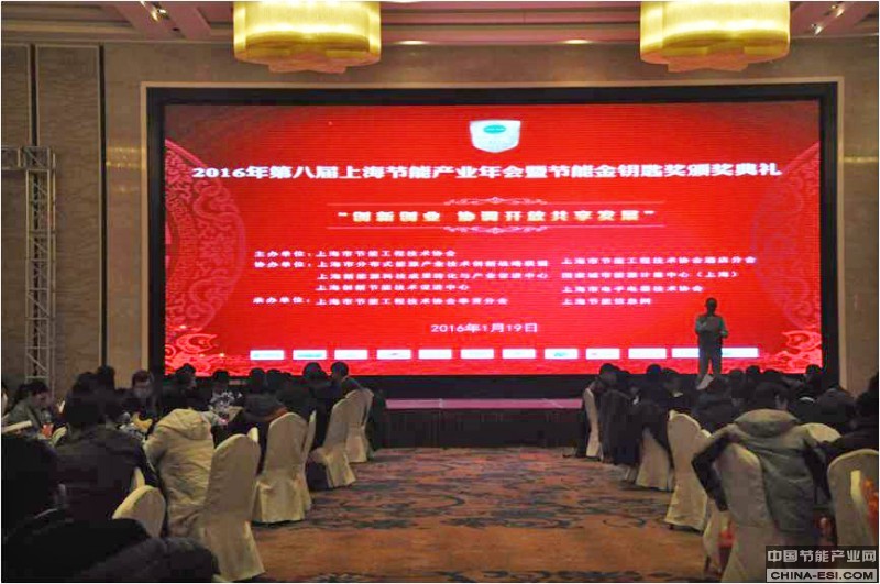 “第8届上海节能产业年会暨节能金钥匙颁奖典礼”于2016年1月19日在古华山庄大酒店盛大举行,此次年会由上海市节能工程技术协会主办,上海市分布式能源产业技术创新战略联盟、上海市节能工程技术协会酒店分会、上海创新节能技术促进中心、国家城市能源计量中心(上海)、上海新能源科技成果转化与产业促进中心、上海市电子电器技术协会等协办,上海市节能工程技术协会奉贤分会、上海节能信息网(www.365jn.cn)承办。年会以“创新创业 协调开放共享发展”为主题,旨在有效激发节能产业各方创新意识、协调各方资源,搭建优质资源与优势企业之间的合作桥梁,实现节能科技创新及资源对接的共享生态圈。上海节能产业年会已成功举办七届,已在行业中形成了高度的权威性及强大的推动力,此次年会聚集了巨大的人气和影响力。来自高校科研院所及行业顶级专家、学者;节能技术产品的企业、节能服务公司、金融机构、用能单位负责人等近300余人共聚一堂,围绕节能产业发展趋势和企业变革潮流,通过跨行业交流的思维碰撞,激发创新灵感,协调各方资源,论道2016节能产业的转型升级,创新发展及道路的未来趋势。