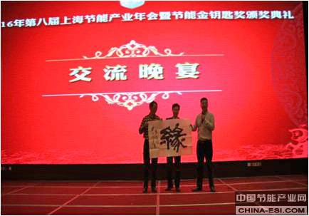 为表彰对节能产业做出卓越成绩的企业、个人及机构,由上海应用技术大学副校长陈东辉和上海市节能工程技术协会会长曹伟武为获得2015年度上海节能金钥匙奖的企业和个人颁发包含“最佳贡献人物”、“节能技术创新企业”、“最佳能源管理企业”、“最佳‘互联网+’企业”、“最佳客户服务企业”等奖项证书,同时上海市节能工程技术协会秘书长陈宏为首批获得上海市节能工程技术等级甲级资质的企业颁发证书。