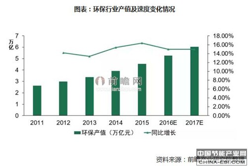 由于环保产业具有市场规模大、波动较小等优势。因此在此次十三五规划提出的诸多项目中,环保项目占据多数。据前瞻产业研究院《中国环保行业报告》的分析,预计到2017年我国环保行业的产值将会达到6万亿元,并且会以15%左右的年复合增长率上涨。